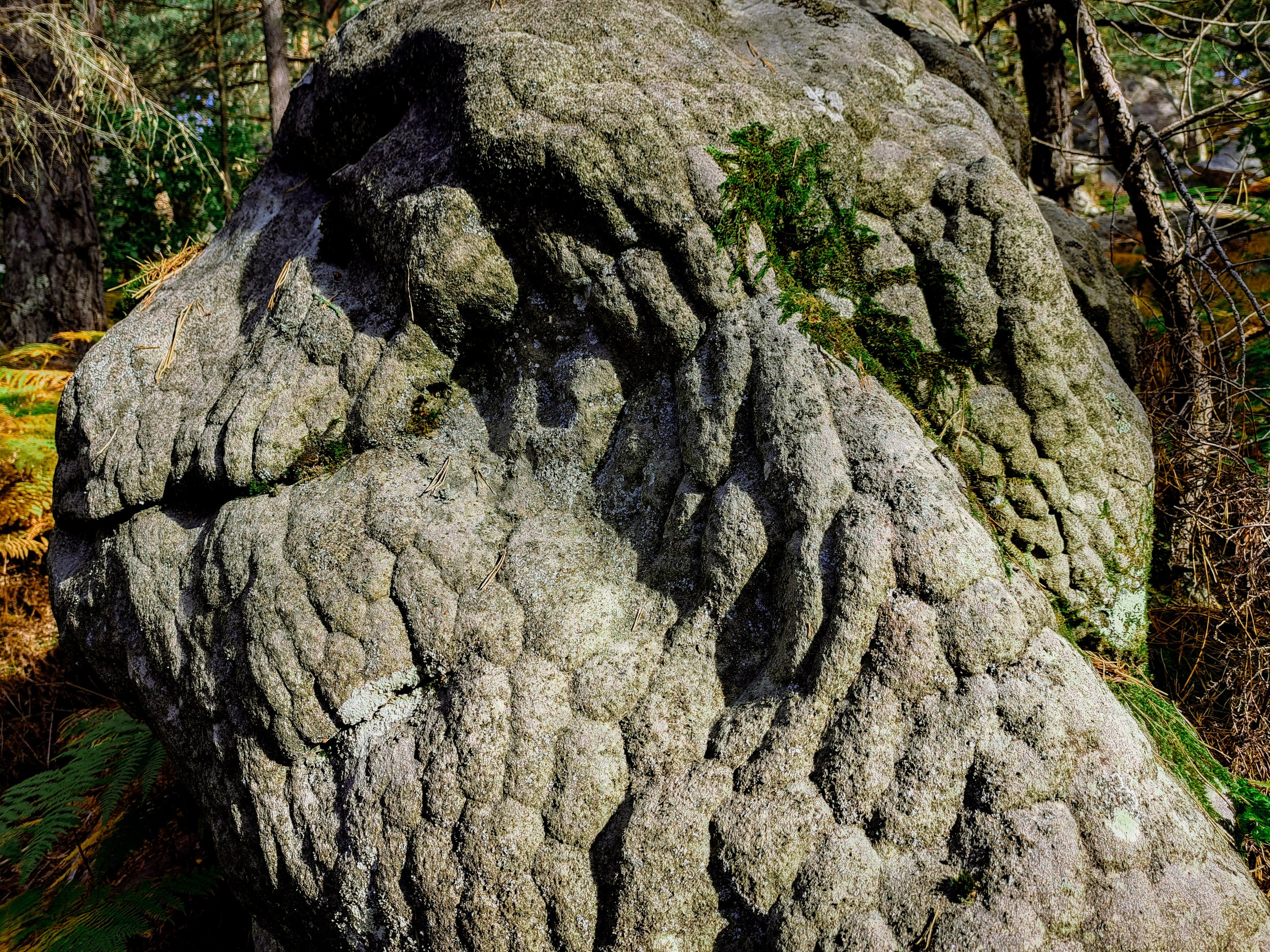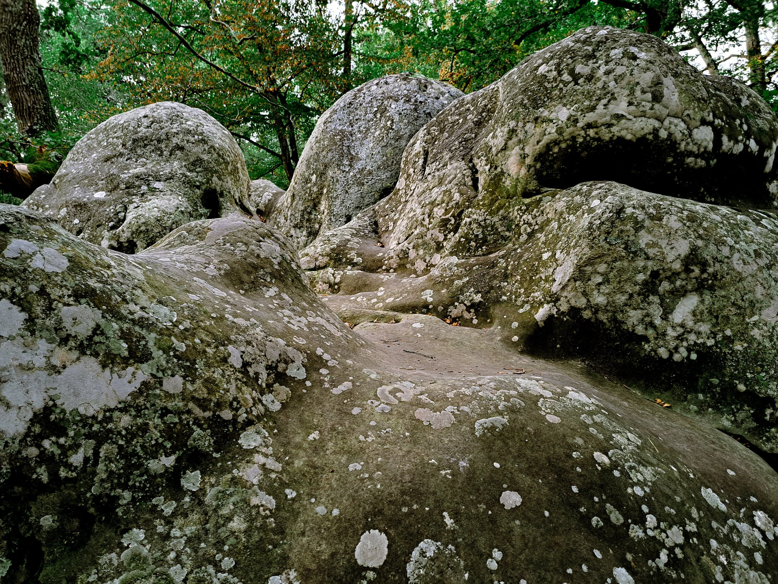 In de rustige bossen van Fontainebleau ontvouwt zich een verhaal van tijd en schoonheid. Hier liggen de stenen verspreid, gevormd door eeuwen van geologische krachten gestaag uit de aarde geslepen door de onafwendbare hand van erosie. Elk brokstuk draagt de geschiedenis van de aarde, elk barstje een teken van de tijd die voorbij is gegaan.
