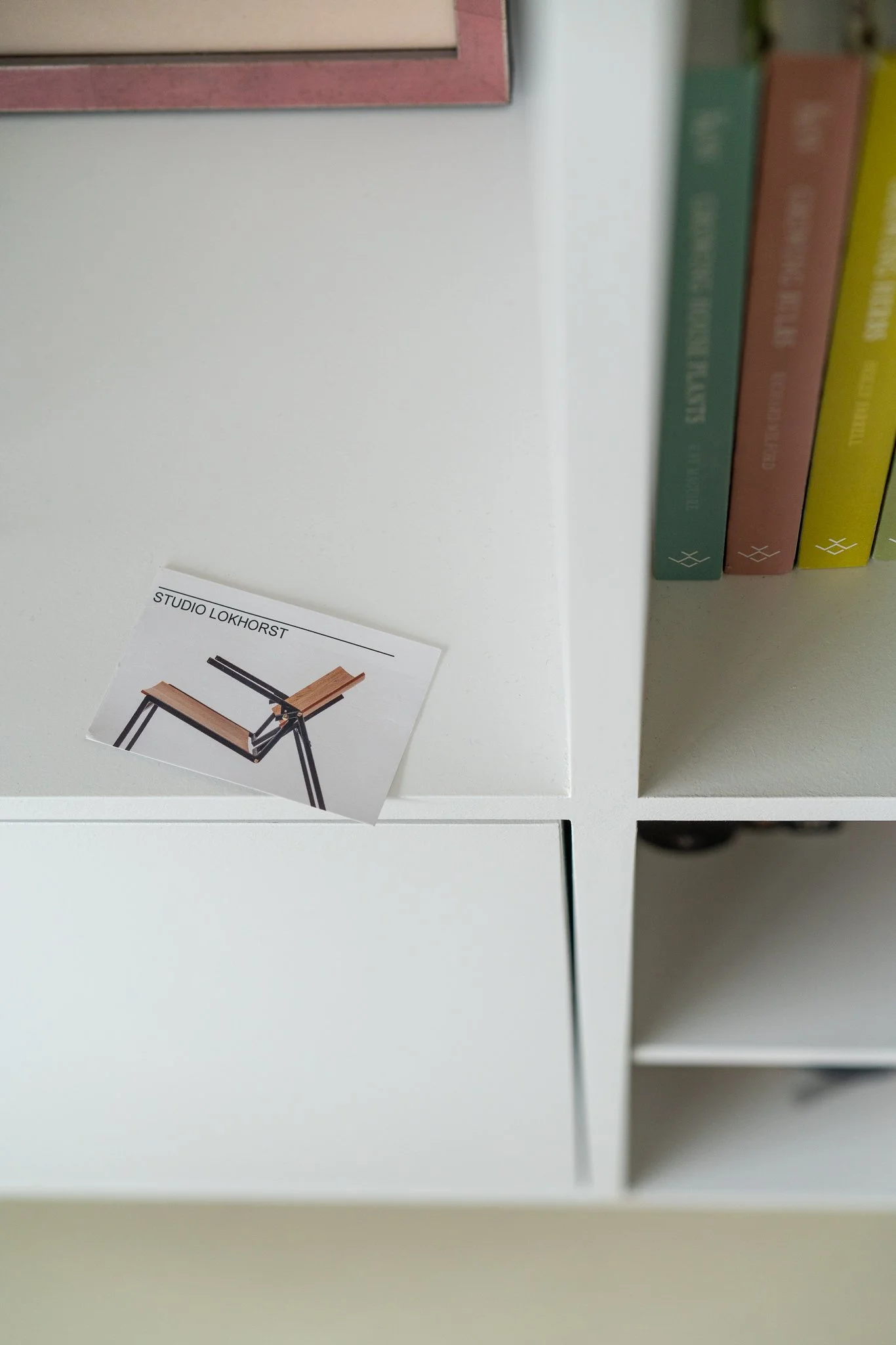 Deze zwevende lage boekenkast is speciaal ontworpen voor een klant in de nieuwe Houthavens. De lage inbouw geeft ruimte aan de woonkamer, toch biedt de kast voldoende ruimte waardoor boeken en kantoorbenodigdheden netjes georganiseerd kunnen worden.